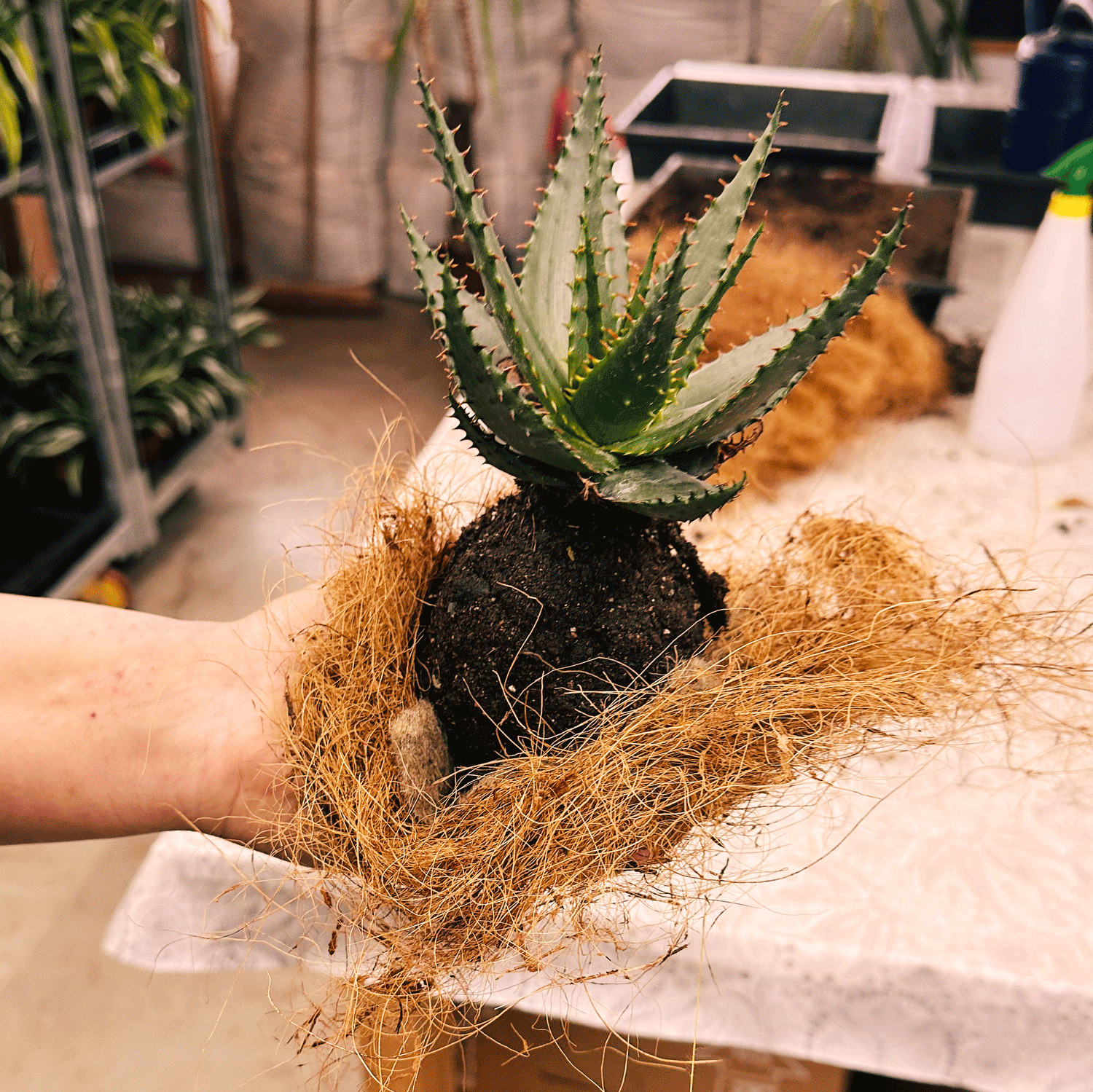 Met veel zorg en aandacht creëren we een uniek bolletje van de kluit, waarbij we gebruikmaken van ons speciaal samengestelde aardemengsel. Dit mengsel hebben we zelf ontwikkeld om jouw plant optimaal te laten gedijen. Vervolgens omhullen we het bolletje met natuurlijke kokosvezels, wat zorgt voor een prachtige, rustieke uitstraling en tegelijkertijd bijdraagt aan een gezonde groei van de plant.